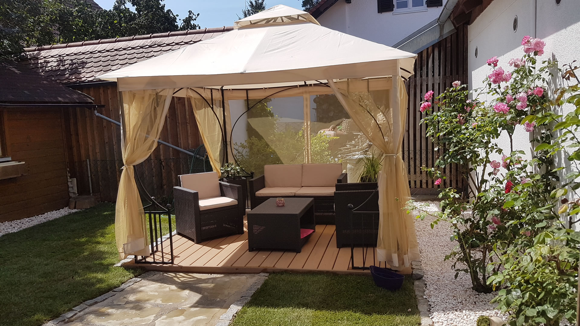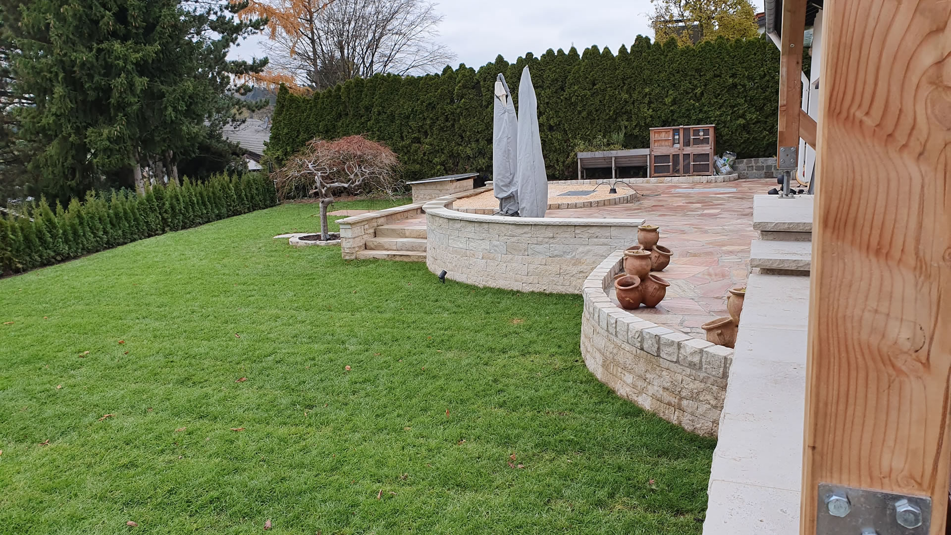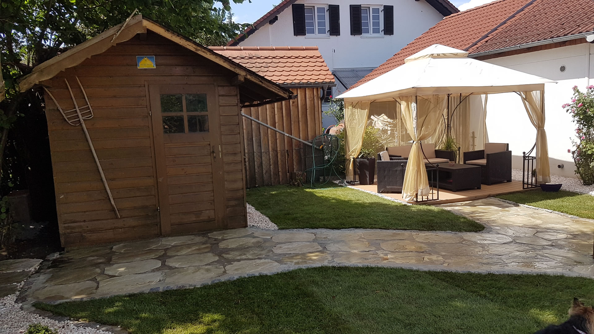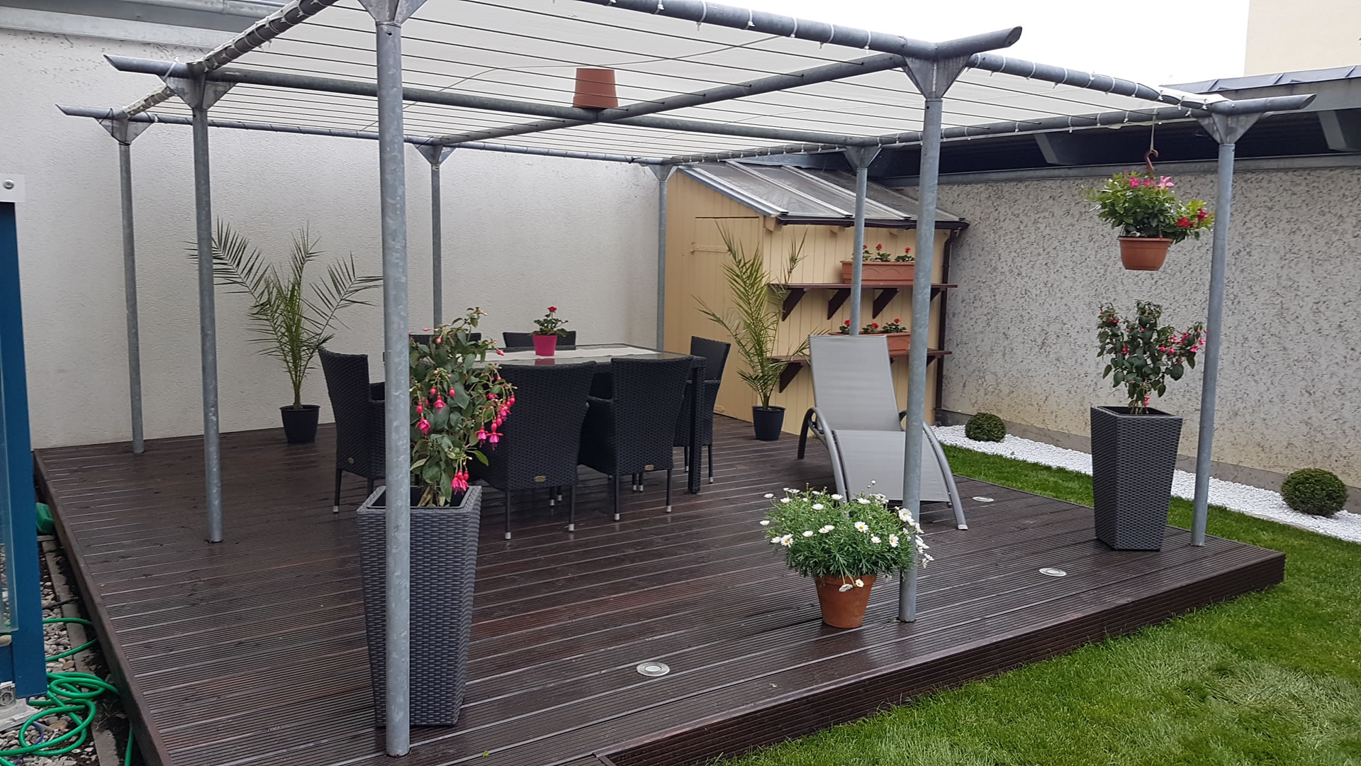 Gartenplanung, Gartenhaus, Gerätehaus, Gartenlauben, Pergolas, Holz-, WPC- und Steinterassen, Rollrasen, Pflanzen- und Heckenschnitt, Natursteine, Fundamente